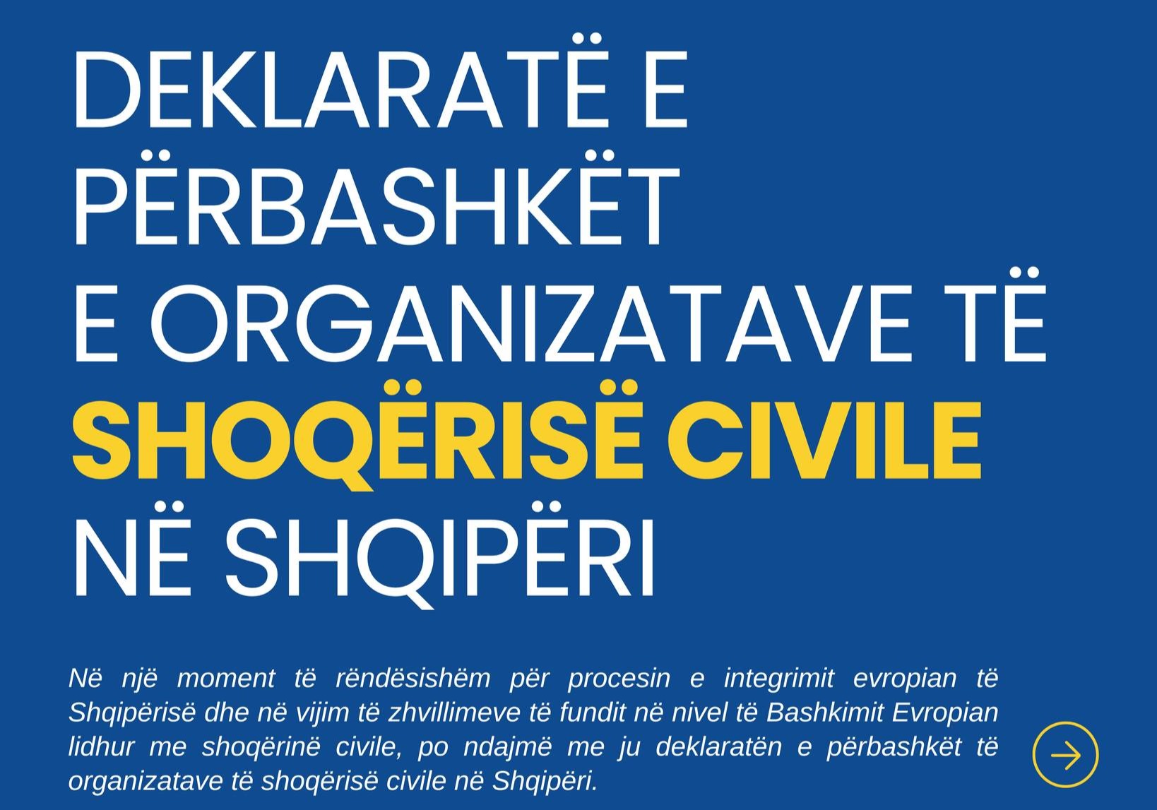Në një moment të rëndësishëm për procesin e integrimit evropian të Shqipërisë dhe në vijim të zhvillimeve të fundit në nivel të Bashkimit Evropian lidhur me shoqërinë civile, po ndajmë me ju deklaratën e përbashkët të organizatave të shoqërisë civile në Shqipëri.