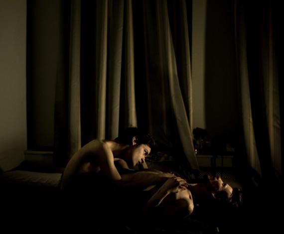 The World Press Photo of 2014, selected today, shares an intimate embrace between a gay couple in a dark room in Russia, captured by Danish photographer Mads Nissen.