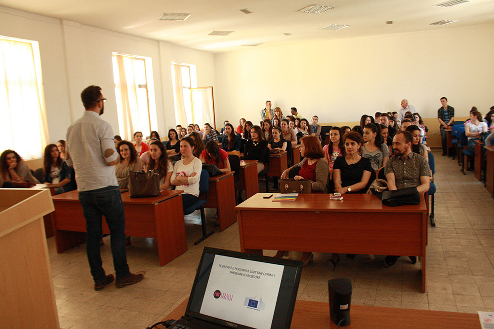On May 8th 2015 in the framework of International Day against Homophobia, Transphobia and Biphobia, PINK Embassy / LGBT Pro Albania held an open lecture at the University of Shkodra, Faculty of Education Sciences.